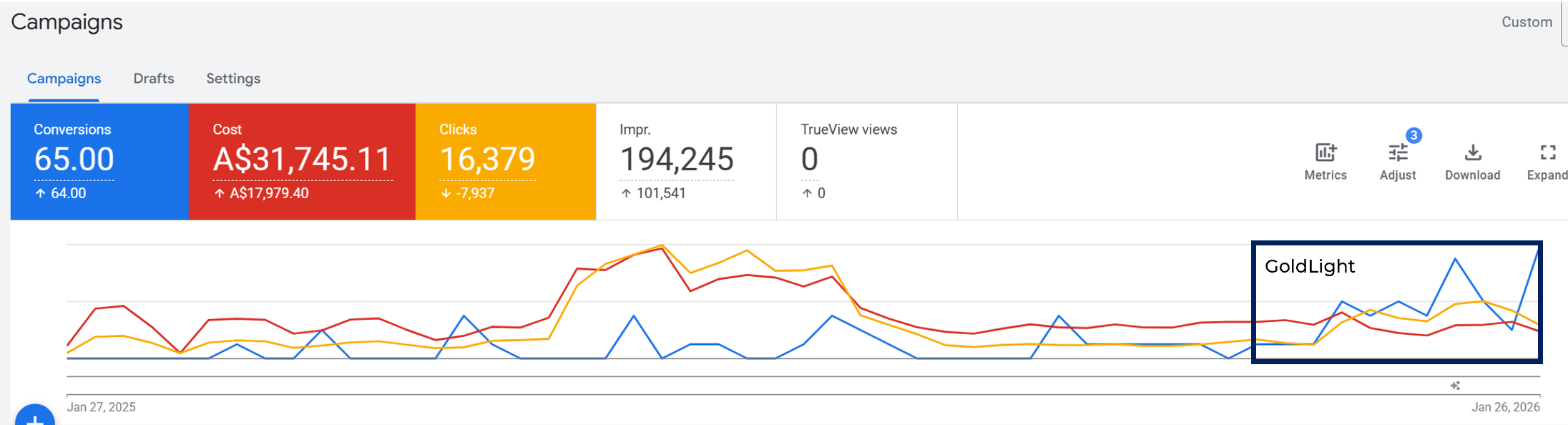Working with a well known establishment in the education sector from November 2025 to optimise their Google Ads performance after they’ve endured a long time without seeing positive returns.